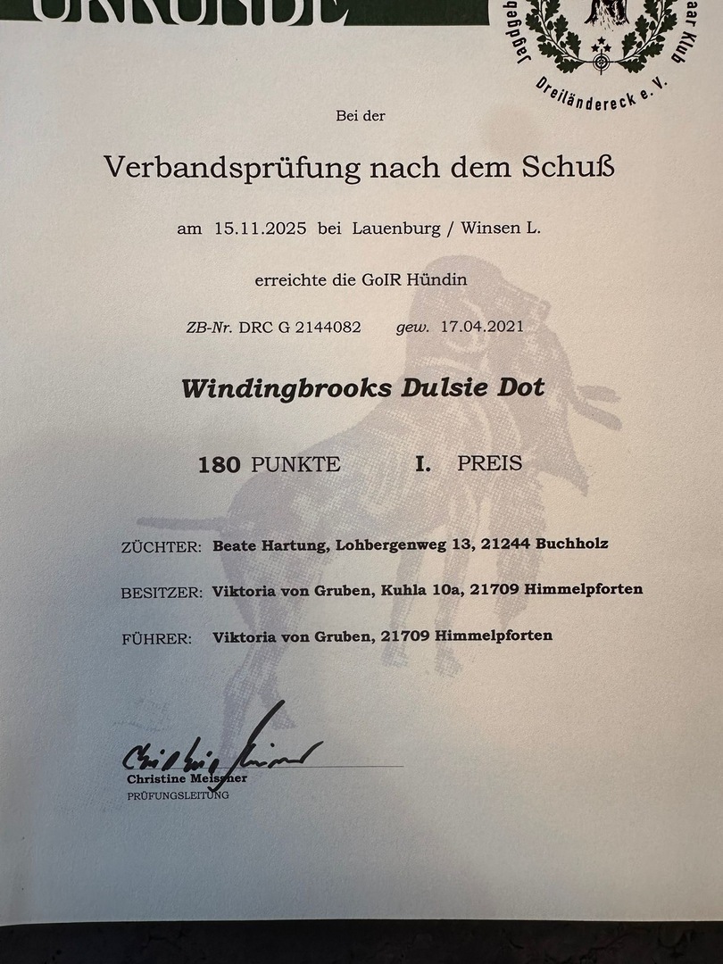 Winsen/Aller und bekommt ein grandioses "vorzüglich ".von der Richterin: