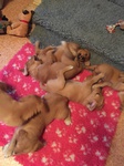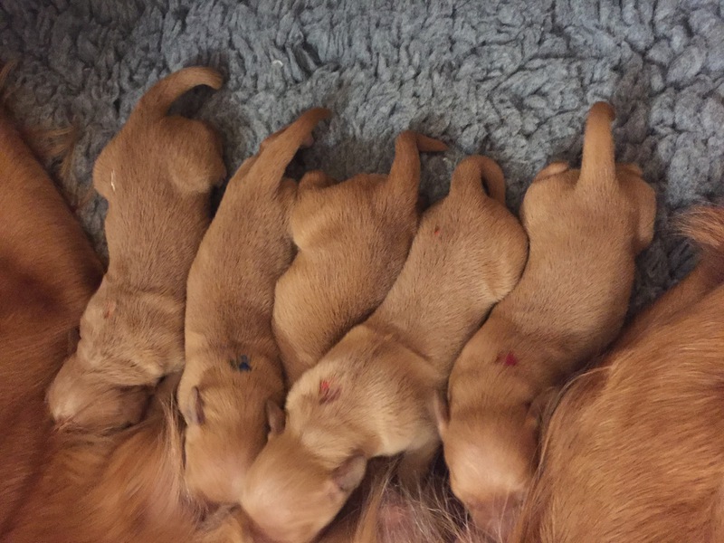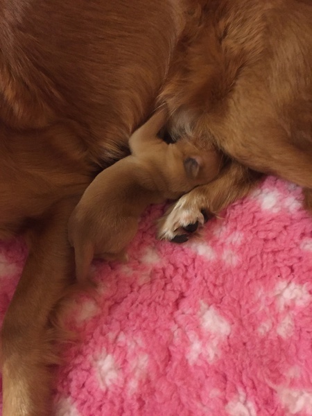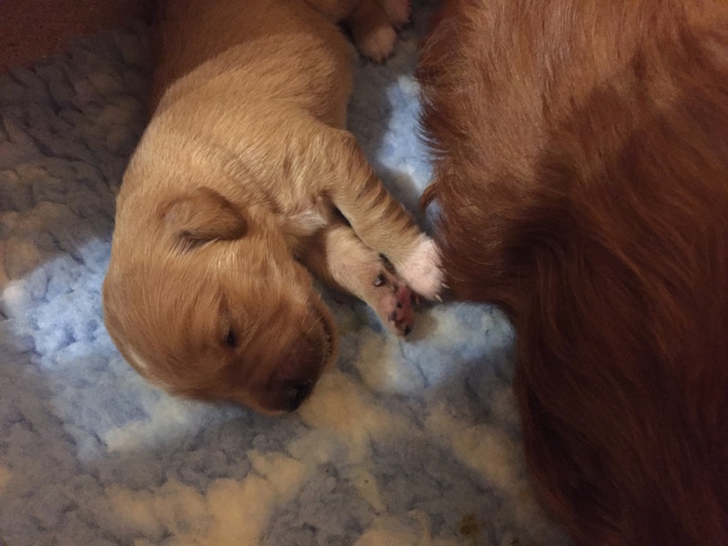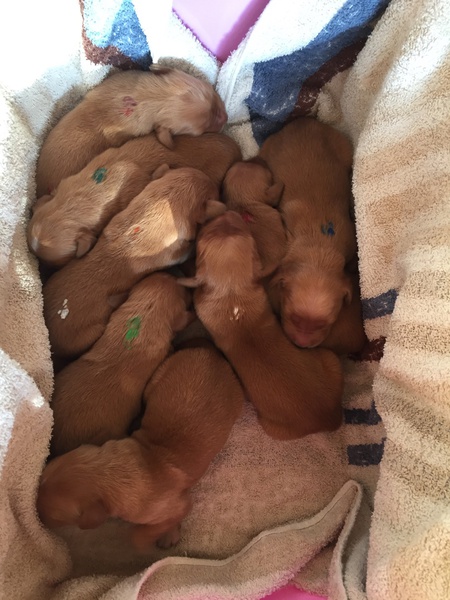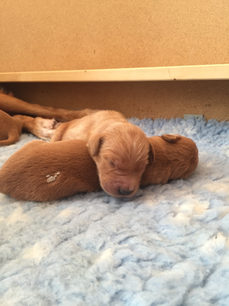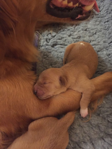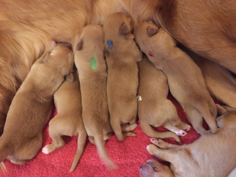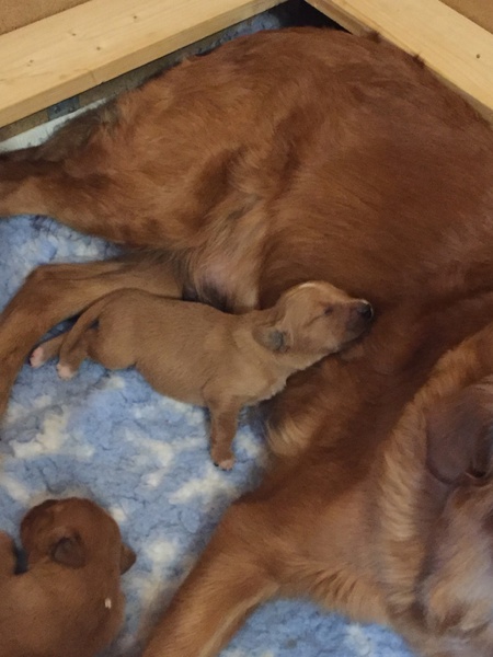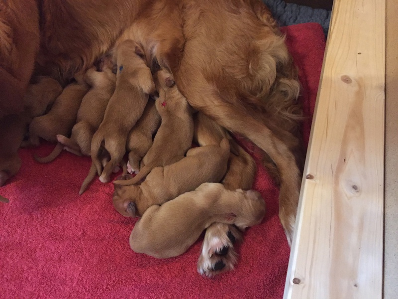 Mutter und Kindern geht es gut! Bei den Welpen beginnt die Pigmentierung! Day hat jetzt großen Hunger und bekommt 4x am Tag Futter!