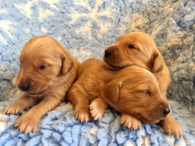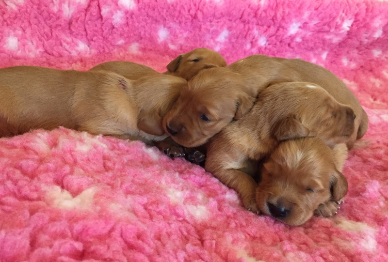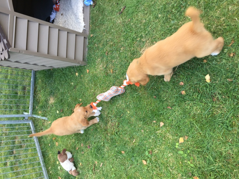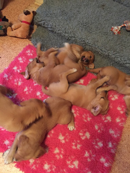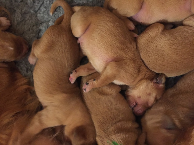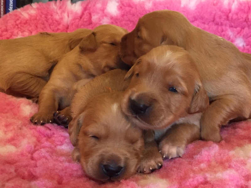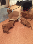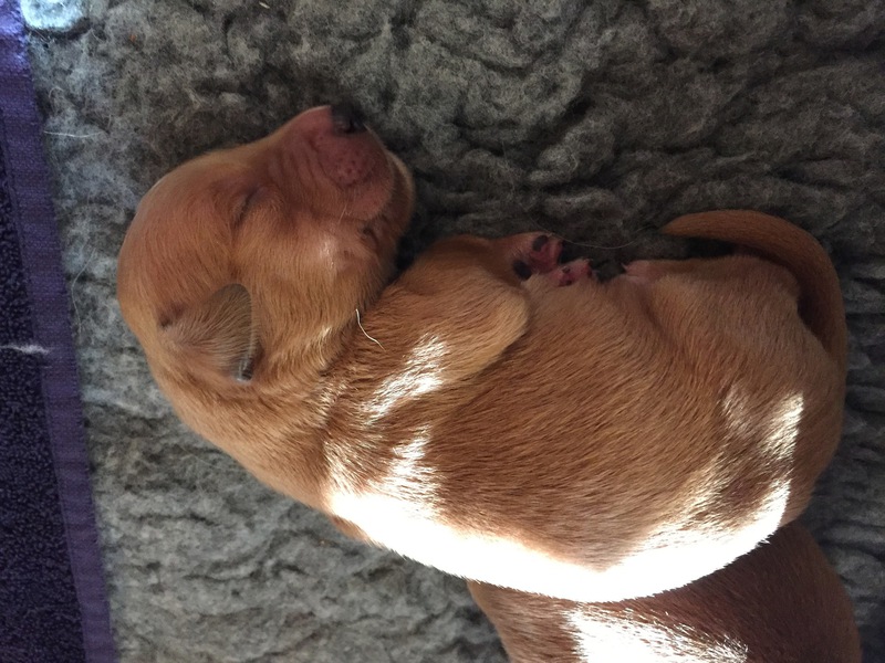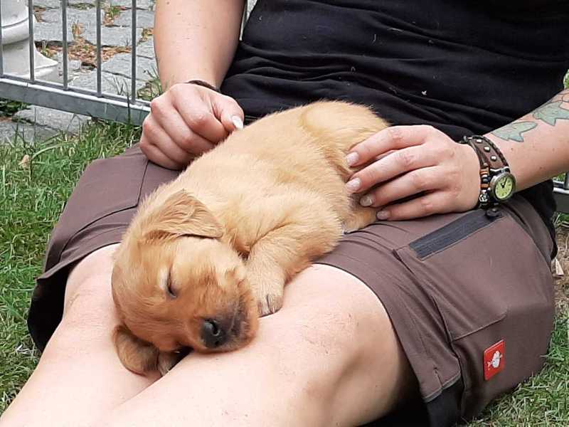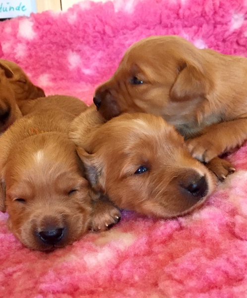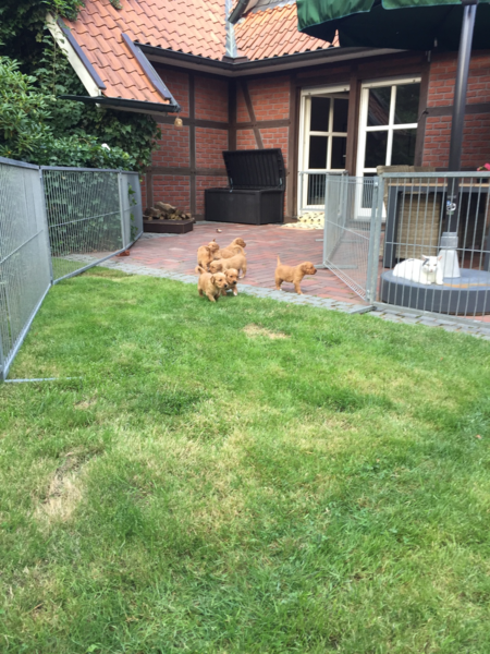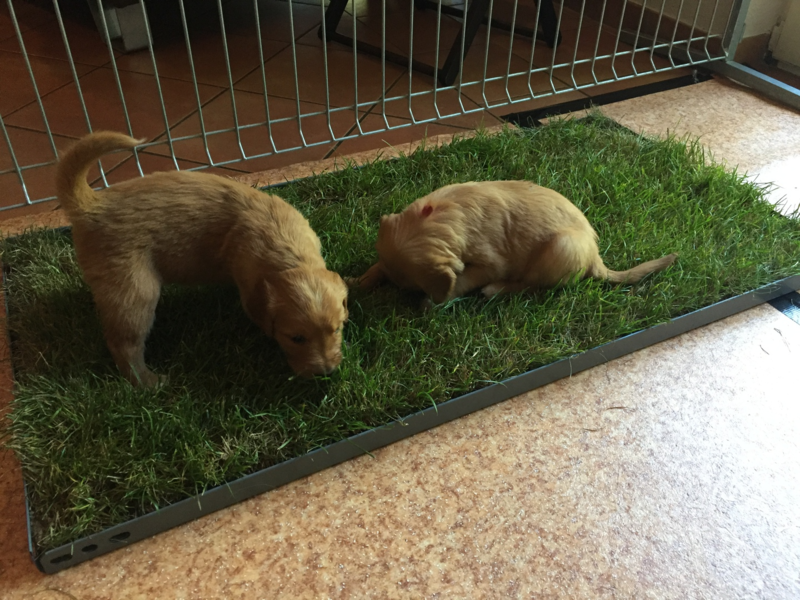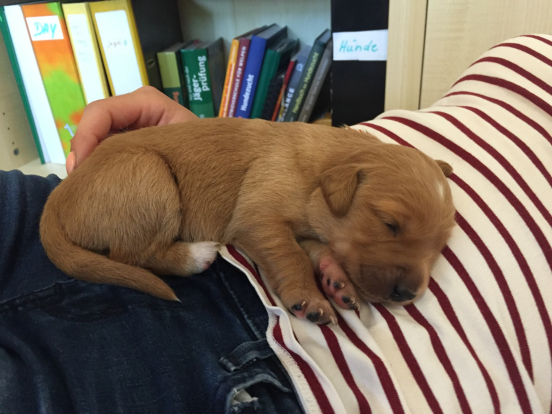 Die recht heißen Tage und eine leichte Magendarmverstimmung haben die Welpen gut überstanden. Nun ist es kühler und die Zwerge drehen so richtig auf. Der Appetit ist riesig und sie haben diese Woche wieder ordentlich an Gewicht zugelegt, trotz der Kartoffelkur zur Darmsanierung :)!