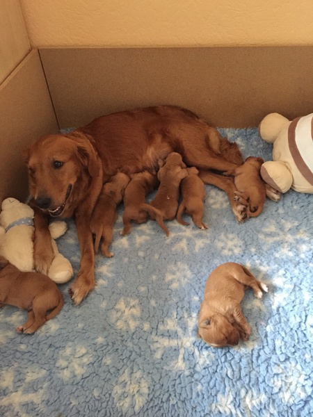 Day und den Welpen geht es gut. Die kleinen wachsen und gedeihen. Day ist eine liebevolle Mama und kümmert sich rührend um ihre kleinen Mäuse.