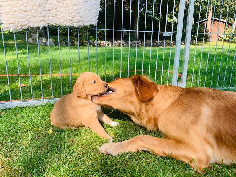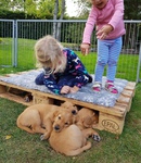 Diese Woche hatten die Welpen viel Besuch von ihren zukünftigen Besitzern, was auch die Großen immer ganz toll finden.