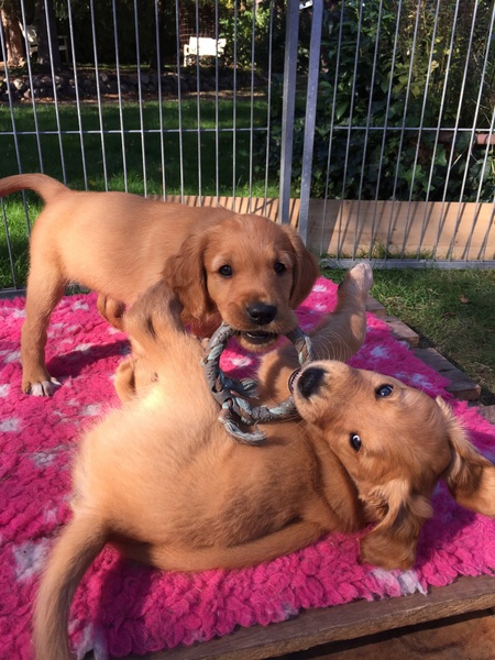 Windingbrooks Balcombe Ginger zieht nach Berlin zu Birgit und Sona um in der Rettungshunde- und Dummyarbeit ausgebildet zu werden.